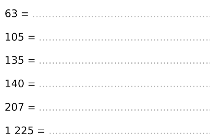 Décomposer les nombres suivants en produits de facteurs premiers.
